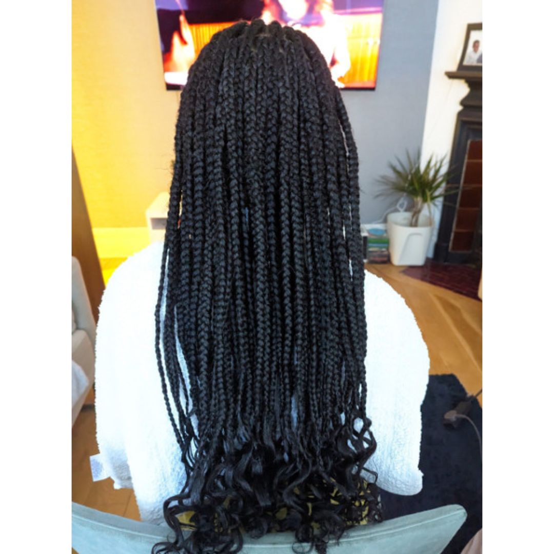 box braids with curly ends East London Afro Hairdressers near me FroHub